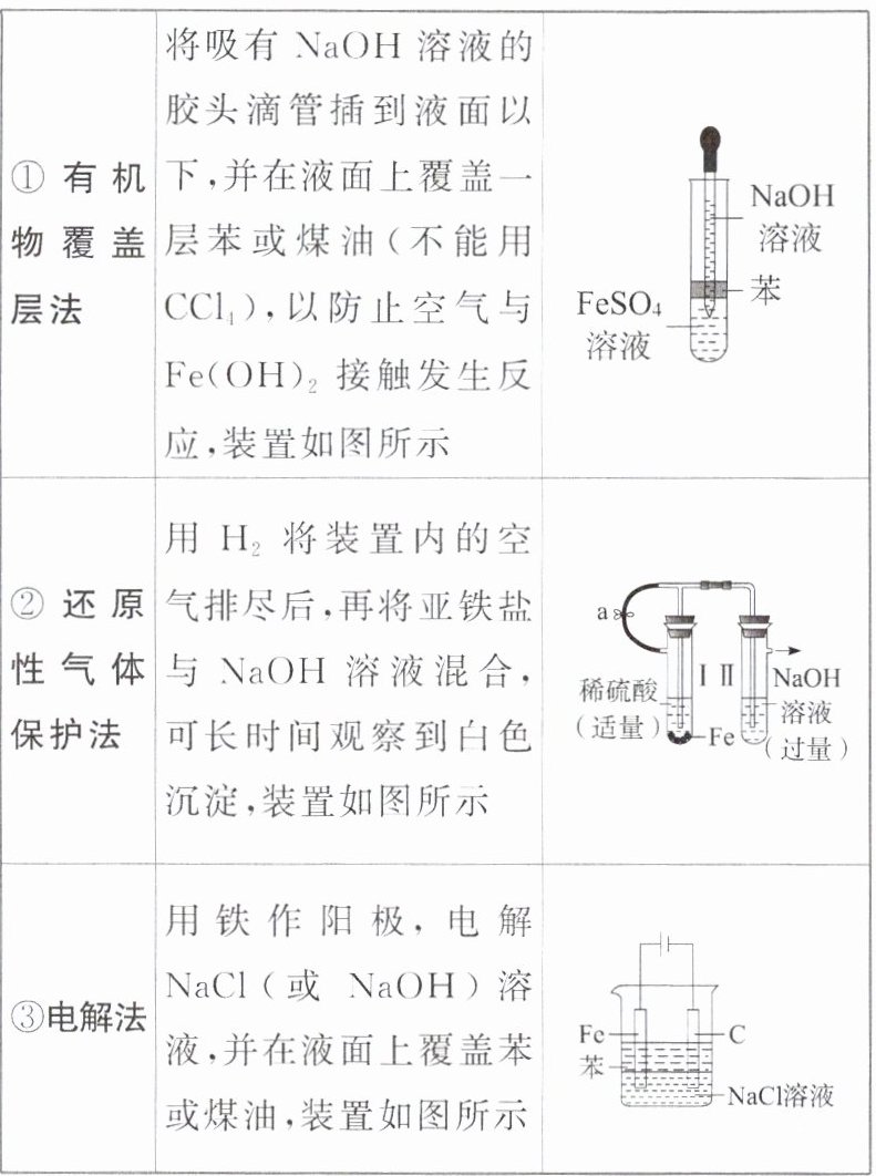 ②注意事项:制备过程中,要保证生成的Fe(OH)₂在密闭、隔绝空气的体系中,防止被氧化。