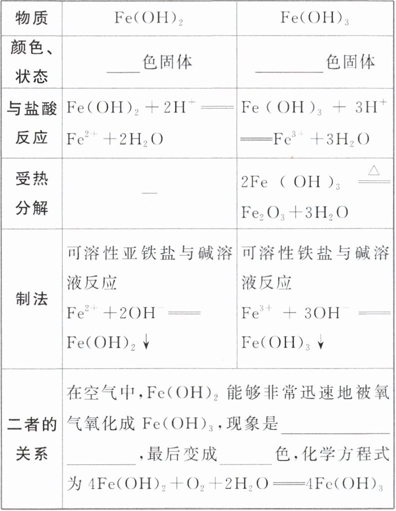 1. Fe(OH)₂和Fe(OH)₃的比较