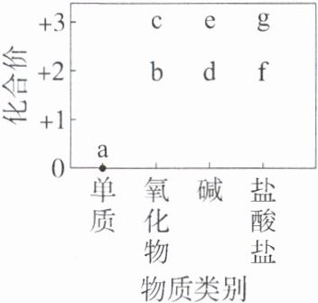 1.C 解析 由图可知a为Fe、b为FeO、c为Fe₂O₃、d为Fe(OH)₂、e为Fe(OH)₃、f为FeCl₂、g为FeCl₃。在高温下铁和水蒸气发生置换反应生成四氧化三铁和氢气,A项正确;由氢氧化亚铁和氧气及水发生化合反应生成氢氧化铁,由铁和氯化铁反应生成氯化亚铁,由铁和氯气在点燃时反应生成氯化铁,B项正确;浓NaOH溶液碱性太强,两者反应生成氢氧化铁沉淀,不能得到胶体,C项错误;铁离子和KSCN结合使溶液变成红色,可鉴别铁离子,D项正确。