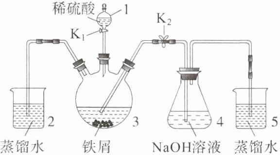 (3)反应开始时,应通过产生的H₂将装置3、4中的空气完全排出,防止生成的Fe(OH)₂被氧化。
