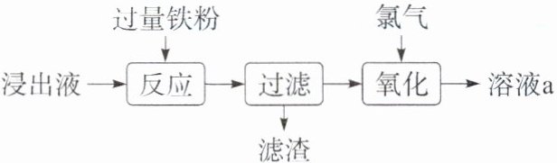 浸出液→(过量铁粉,反应)→(过滤)→(滤渣,氯气,氧化)→溶液a