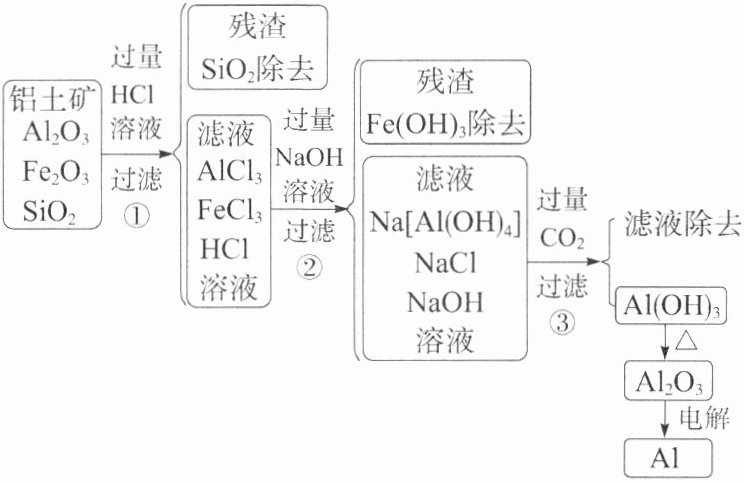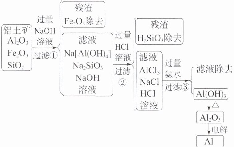 两种方法均通过溶解、除杂、沉淀得到Al(OH)₃,再分解电解得Al;核心为分离铝土矿中杂质(Fe₂O₃、SiO₂)并提纯Al₂O₃。