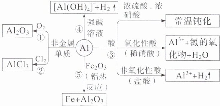 (2)④2Al+2OH⁻+6H₂O══2[Al(OH)₄]⁻+3H₂↑ ⑤2Al+Fe₂O₃高温════Al₂O₃+2Fe