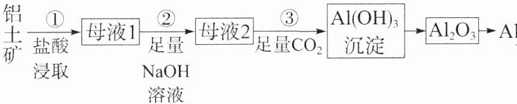[对点训练2] 铝土矿中主要含有Al₂O₃,还有少量Fe₂O₃、SiO₂杂质,从铝土矿中冶炼金属铝的方法如图所示(步骤①、②、③中每步反应结束后经过过滤才进行下一步反应)。下列有关说法不正确的是(