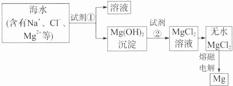 )A.为了使Mg²⁺转化为Mg(OH)₂,试剂①可选用石灰乳