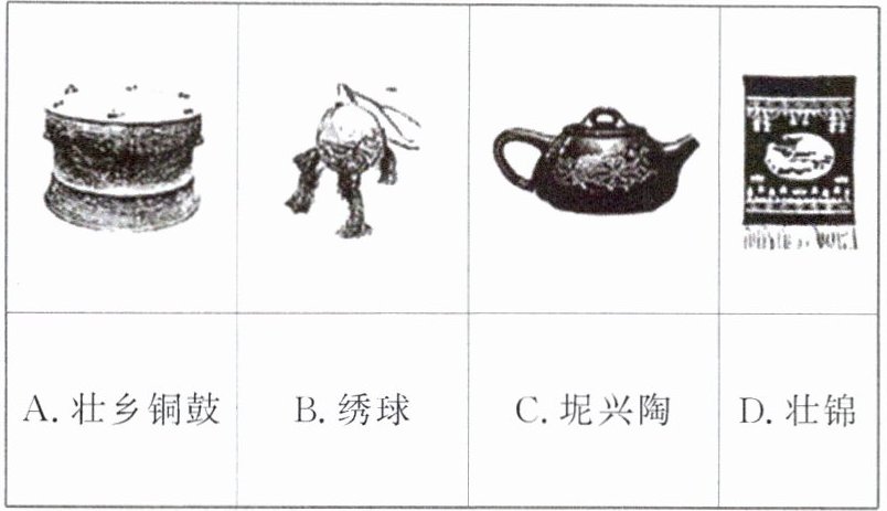 1. (2024·七省适应性测试广西化学,1) 下列广西优秀传统工艺品中,主要由合金材料制成的是(