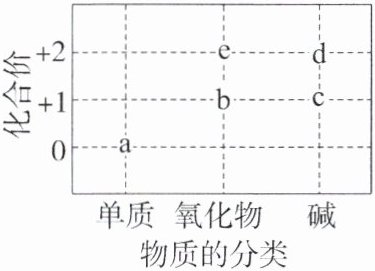 6.B 解析 由图可知a、b、c对应物质可能分别为钠、氧化钠(过氧化钠)、氢氧化钠,a、b、e、d对应的物质也可能分别分别为铜、氧化亚铜、氧化铜、氢氧化铜。氢氧化钠和硫酸铜反应生成氢氧化铜,氢氧化铜受热分解生成氧化铜,存在c→d→e的转化,A正确;钠和氧化钠(过氧化钠)都能与H₂O反应,都能生成NaOH,B错误;新制的氢氧化铜可用于检验葡萄糖中的醛基,C正确;若b能与H₂O反应生成O₂,则b为过氧化钠,结构中含共价键和离子键,D正确。