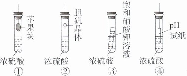 (1) 一段时间后,①中苹果块变干瘪,②中胆矾晶体表面出现白斑,说明浓硫酸具有