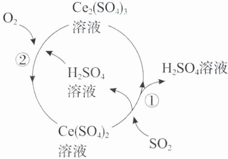 3. (2024·河南豫北名校联考) 化石燃料燃烧会产生大气污染物$SO_2$、$NO_x$等,科学家实验探究用硫酸铈循环法吸收$SO_2$,其转化原理如图所示,下列说法正确的是(