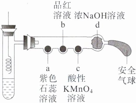 B.a处变红,说明$SO_2$是酸性氧化物