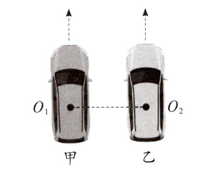 3.D 解析根据几何知识可知,当甲车在乙车前方且$O_{1}$、$O_{2}$间的距离为5m时,有$x_{甲}-x_{乙}=4m$,根据运动学公式有$x_{甲}=v_{甲}t-\frac {1}{2}at^{2}$,$x_{乙}=v_{乙}t$,解得$t_{1}=2s$,$t_{2}=4s$;因为甲车做匀减速直线运动而乙车做匀速运动,所以两车之间的距离先增大后减小,当$0<t<2s$时,$O_{1}$、$O_{2}$间的距离小于5m;$2s<t<4s$时,$O_{1}$、$O_{2}$间的距离大于5m。当$t = t_{2}=4s$时,甲车的速度为$v_{甲1}=v_{甲}-at_{2}=1m/s<v_{乙}$,所以$t = 4s$之后,甲、乙两车的距离不断减小,且甲车能够继续行驶的距离为$x_{甲1}=\frac{v_{甲1}^{2}}{2a}=0.5m$,根据几何关系可知,从$t = 4s$开始到乙车行驶至甲车前方4m的过程中,$O_{1}$、$O_{2}$间的距离小于5m,这段过程经历的时间为$t'=\frac{2\times4m + 0.5m}{v_{乙}}=4.25s$,所以甲、乙两车能利用蓝牙通信的时间为$t_{总}=2s + 4.25s = 6.25s$,故选项D正确。