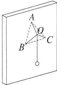 11. (2024安徽滁州模拟)如图所示,将三根完全相同的轻质细杆,两两互成$90^{\circ}$,连接到同一个顶点$O$,另一端分别连接到竖直墙壁上的$A$、$B$、$C$三个点,$BC$连线沿水平方向,$\triangle ABC$是等边三角形,$O$、$A$、$B$、$C$点处分别是四个可以向各个方向自由转动的轻质光滑铰链(未画出)。在$O$点用细绳悬挂一个质量为$m$的重物,则$AO$杆对墙壁的作用力为( )
