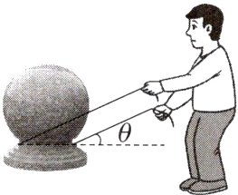 (1)若轻绳与水平面的夹角θ为60°,求轻绳对石墩的总作用力大小。
