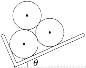 4. 课堂上,老师准备了“└”形光滑木板和三个完全相同、外表面光滑的匀质圆柱形积木,要将三个积木按如图所示(截面图)方式堆放在木板上,则木板与水平面夹角θ的最大值为( )