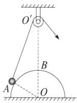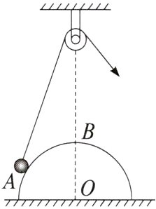 3. 如图所示,水平面上固定一光滑半球,球心O的正上方固定一个小滑轮,绳上系一小球,小球静置于半球面上的A点时,绳绕过定滑轮,另一端的拉力为F_{T}。现缓慢地将小球从B点释放到A点,则此过程中,小球对半球面的压力F_{N}以及细线拉力F_{T}的大小变化情况,以下说法正确的是( )