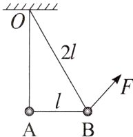 5. 如图所示,重力都为G的两个小球A和B用三段轻绳连接后悬挂在O点上,O、B间轻绳的长度是2l,A、B间轻绳的长度是l。将一个拉力F作用到小球B上,使三段轻绳都伸直,同时O、A间和A、B间的两段轻绳分别处于竖直和水平方向上,则拉力F的最小值为( )