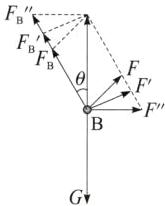 B 解析 $F_{OA}$、$F_{OB}$ 的合力竖直向上,等于花盆的重力,$OB$ 与 $OA$ 之间的夹角减小的过程中,力三角形如图所示,$F_{OA}$ 逐渐减小,$F_{OB}$ 先减小后增大。故选B。