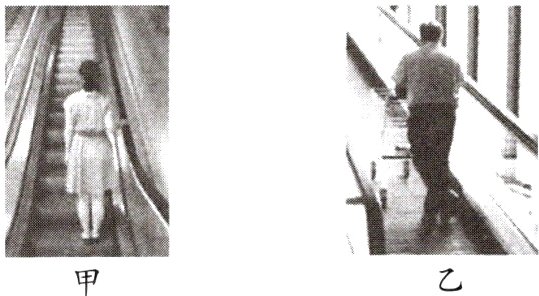 2. (2024广东惠州月考)图甲为一女士站在台阶式自动扶梯上匀速上楼(忽略扶梯对手的作用),图乙为一男士站在履带式自动扶梯上匀速上楼,两人相对扶梯均静止。下列关于做功的判断正确的是( )