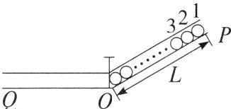 9. (多选)固定在竖直面内的光滑圆管POQ,PO段长度为L,与水平方向的夹角为30°,在O处有插销,OQ段水平且足够长。管内PO段装满了质量均为m的小球,小球的半径远小于L,其编号如图所示。拔掉插销,1号球在下滑过程中( )