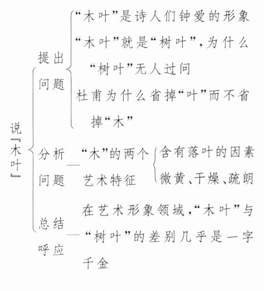 (必修下册第三单元)下面是《说木叶》一文的结构图示,请结合图示和课文内容,简要说明这篇文章的行文思路。