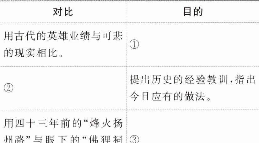 3. 《永遇乐·京口北固亭怀古》一词运用了四组对比,请结合词作填出下表。
