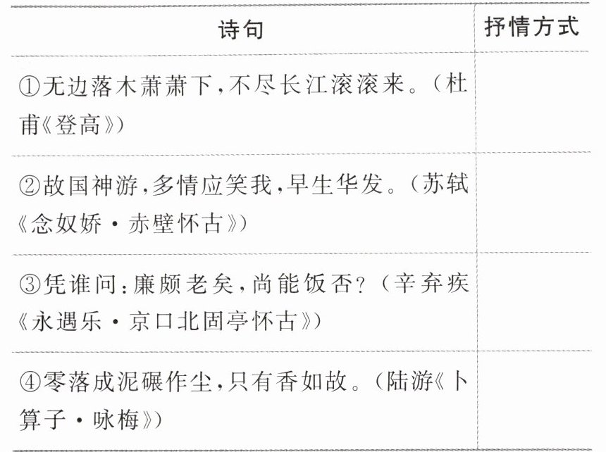 借景抒情@@直抒胸臆@@用典抒情@@借物抒情