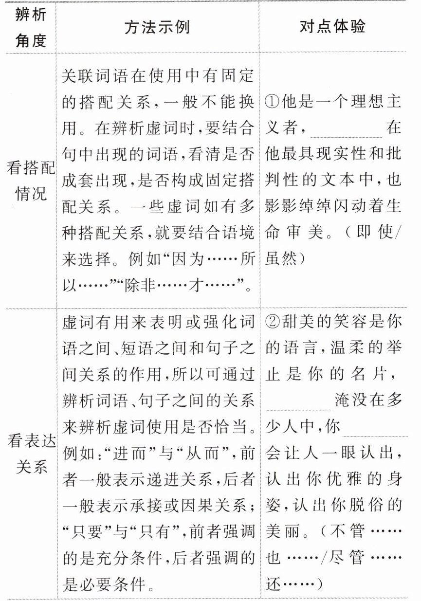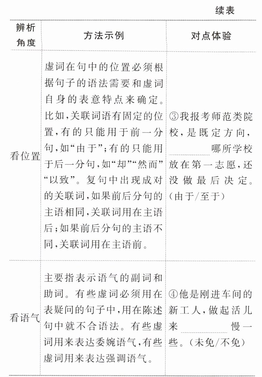对虚词的考查主要涉及连词、介词和副词在动态语境中使用情况的辨析,偶尔也涉及助词的使用