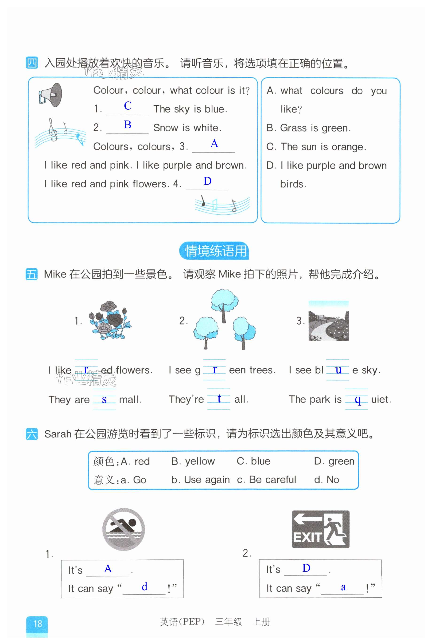 注:目前有些书本章节名称可能整理的还不是很完善,但都是按照顺序排列的,请同学们按照顺序仔细查找。练习册 2024年人教金学典同步解析与测评三年级英语上册人教版云南专版 答案主要是用来给同学们做完题方便对答案用的,请勿直接抄袭。