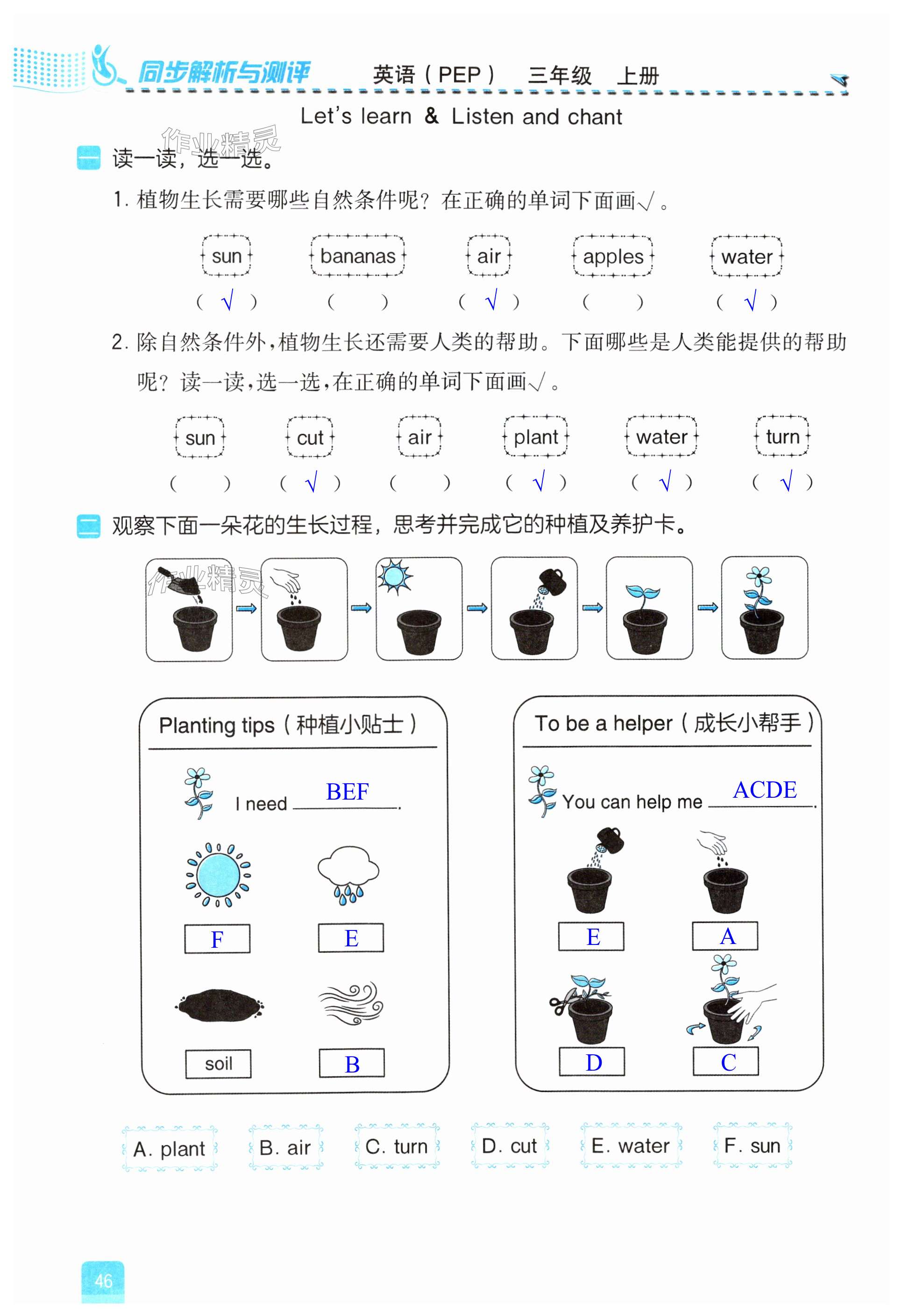 注:目前有些书本章节名称可能整理的还不是很完善,但都是按照顺序排列的,请同学们按照顺序仔细查找。练习册 2024年人教金学典同步解析与测评三年级英语上册人教版云南专版 答案主要是用来给同学们做完题方便对答案用的,请勿直接抄袭。