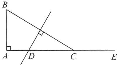 11. 如图,在Rt△ABC中,∠A = 90°,作BC的垂直平分线交AC于点D,延长AC至点E,使CE = AB.