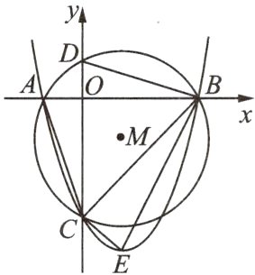 12. 如图,已知抛物线y = $ax^{2}+bx - 3$与x轴交于A,B两点,与y轴交于点C,经过A,B,C三点的圆的圆心M(1,m)恰好在此抛物线的对称轴上,⊙M的半径为$\sqrt{5}$.设⊙M与y轴交于点D,抛物线的顶点为E.