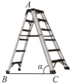 1.如图,一架人字梯立在地面上.已知AB = AC = 2m,AC与地面BC的夹角为α,则两梯脚之间的距离BC为( ).
