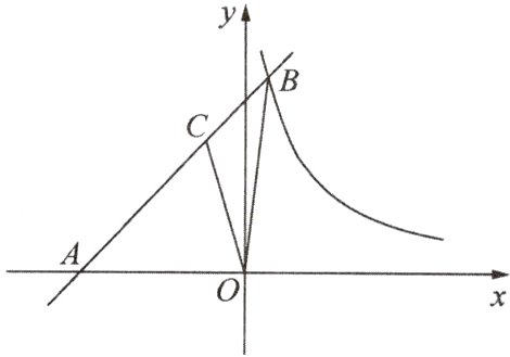 11. 如图,在平面直角坐标系中,函数y = x + b的图象与函数y = $\frac{k}{x}$(x>0)的图象相交于点B(1,6),并与x轴交于点A。点C是线段AB上一点,△OAC与△OAB的面积比为2∶3。