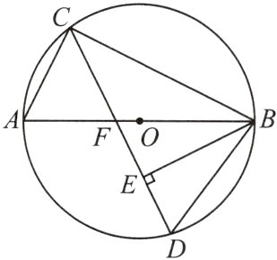 5.如图,△ABC是⊙O的内接三角形,AB是⊙O的直径,AC =$\sqrt{5}$,BC = 2$\sqrt{5}$,点F在AB上,连接CF,延长CF交⊙O于点D,连接BD,作BE⊥CD,垂足为E.