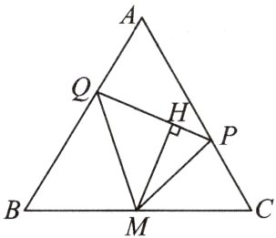 3.如图,在△ABC中,AB = AC,BC = 14,∠B = ∠QMP = 60°,MH⊥PQ于点H,BM = CM.