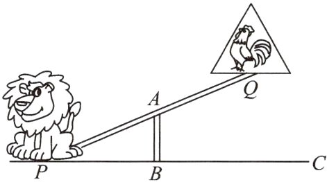 9. 如图,马戏团的狮子和公鸡表演跷跷板节目,跷跷板支柱AB的高度为1.2m,跷跷板的长度PQ为4.8m.