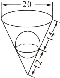 10. 将钢球放置到一个倒立的空心透明圆锥中,测得相关数据如图所示(尺寸单位:cm),求钢球的半径(圆锥的壁厚忽略不计).