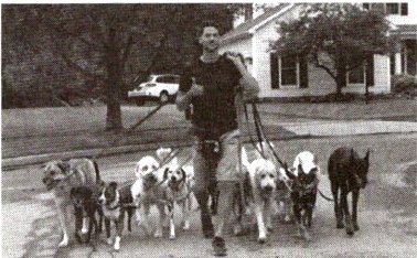 A. walks fifteen dogs each time B. thinks the job is too hard to do