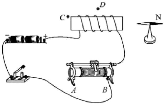 (2)在螺线管外部C、D两处放置小磁针,闭合开关,发现C处小磁针发生偏转,而D处小磁针不偏转,试说明D处小磁针不偏转的可能原因:______________________________。
