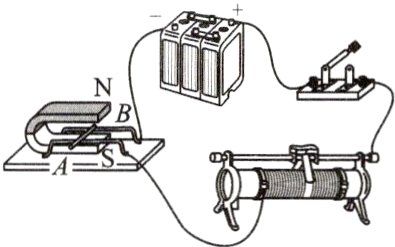 3. 在如图所示的实验装置中,接通电源后,导体AB受力的作用发生运动,然后改变电流方向或磁感线方向,则下列说法错误的是( )。