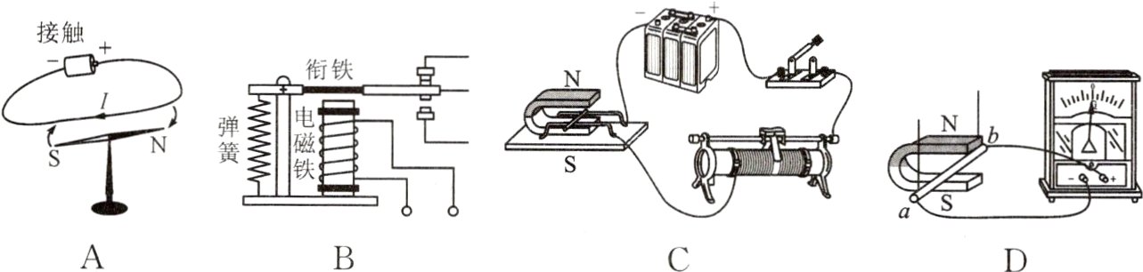 4. 如图,可以用来研究电动机工作原理的是( )。