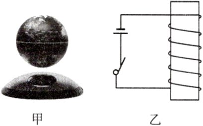12. 图甲是利用磁悬浮原理浮在空中的地球仪,地球仪底部有磁体,底座内装有电磁铁,电磁铁的原理如图乙所示,下列说法正确的是( )。