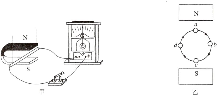 (2)该同学尝试让导体在两磁极间运动一周(如图乙),图乙中小圆圈代表导体的横截面,箭头表示导体的运动方向,能使电流计指针偏转的位置是_______。