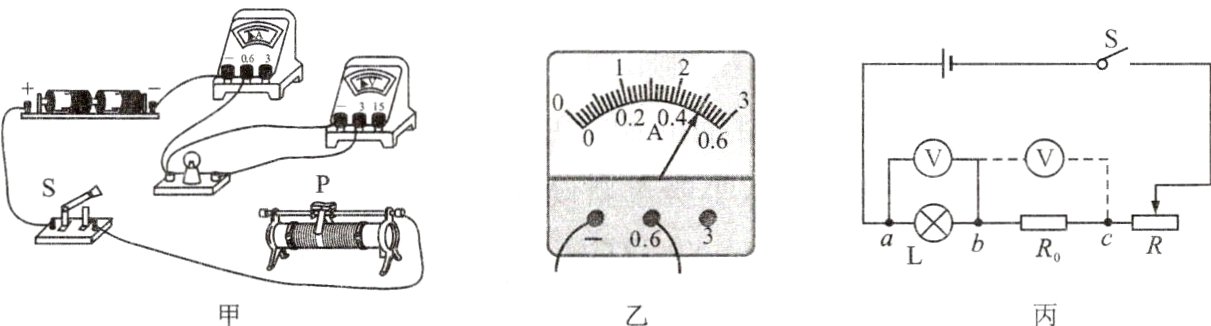 (3)故障排除后,闭合开关,移动滑动变阻器滑片P到某处时,电压表示数为2V,为了测量小灯泡的额定功率,应调节滑片P使滑动变阻器接入电路中的阻值________(选填“变大”或“变小”),使电压表示数为2.5V,此时电流表指针位置如图乙所示,则小灯泡的额定功率为______W。
