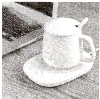 15. 一款电保温杯垫,如图所示,能使杯垫上杯内的水持续保温在55℃左右,功率为16W。把质量为200g、初温为51℃的水倒入杯中保温,5min后升高到55℃。已知cₛ = 4.2×10³ J/(kg·℃)。这段时间内,水吸收的热量为__________J,杯垫消耗的电能为__________J,杯垫给水加热的效率为____________。