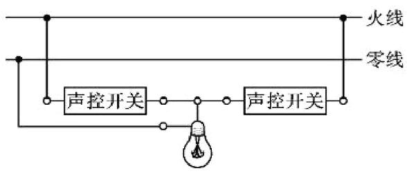 8. 声控开关在静音时处于断开状态,在接收到一定响度的声音时会自动闭合一段时间;某地下通道两端的入口处各装有一个声控开关来控制同一盏电灯,为确保行人不管从哪端进入,电灯都能接通电源发光,请用笔画线代替导线,按题意要求将图中的电路连接完整。