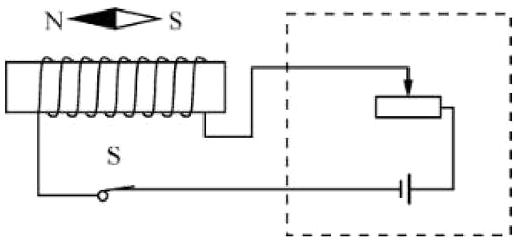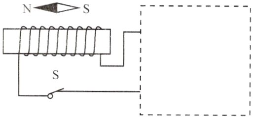 7. 将下图中的电磁铁连入你设计的电路中(在方框内完成)。要求:(1)电路能改变电磁铁磁性的强弱;(2)使小磁针静止时如图所示。