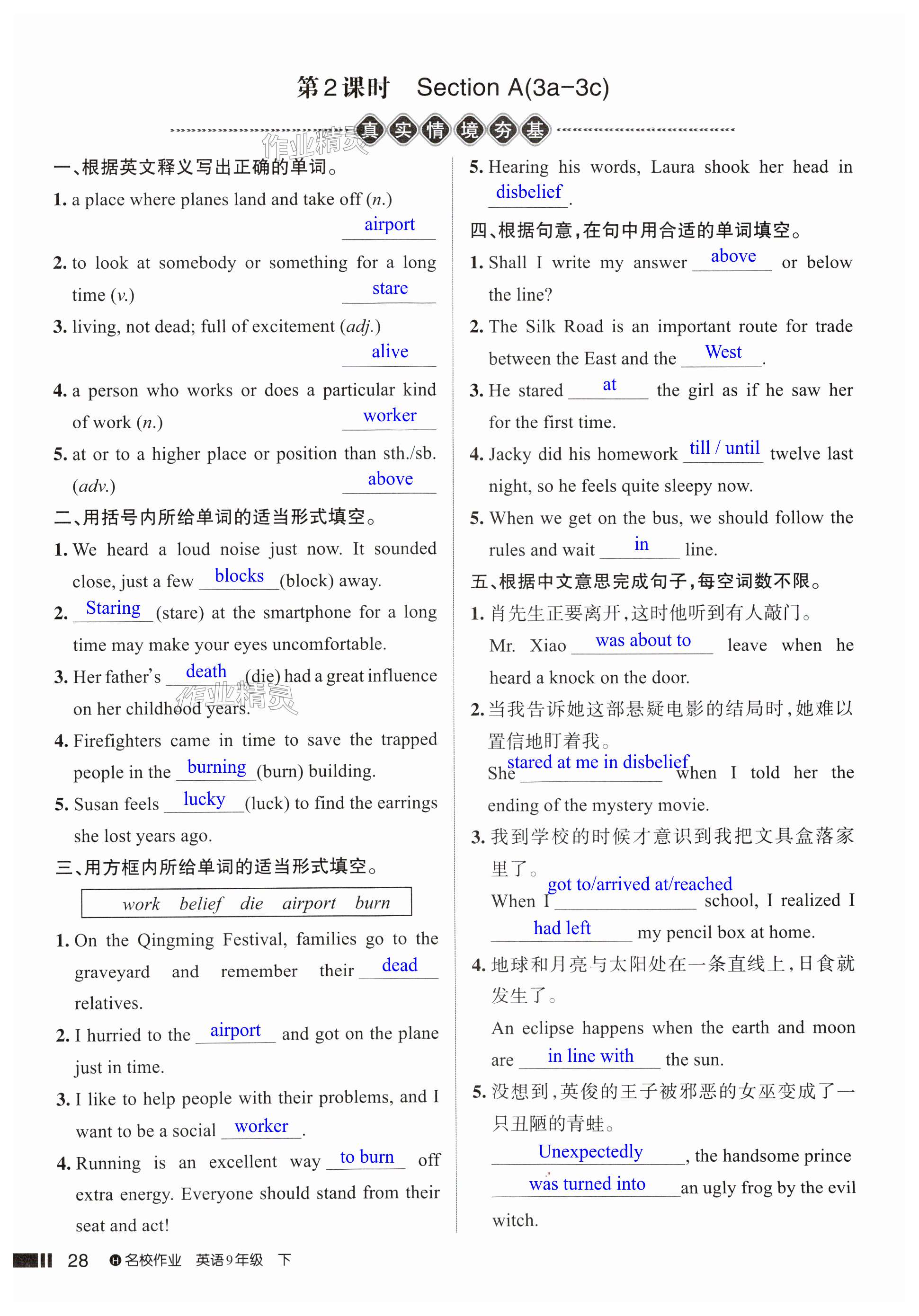 注:目前有些书本章节名称可能整理的还不是很完善,但都是按照顺序排列的,请同学们按照顺序仔细查找。练习册 2025年名校作业九年级英语下册人教版湖北专版 答案主要是用来给同学们做完题方便对答案用的,请勿直接抄袭。