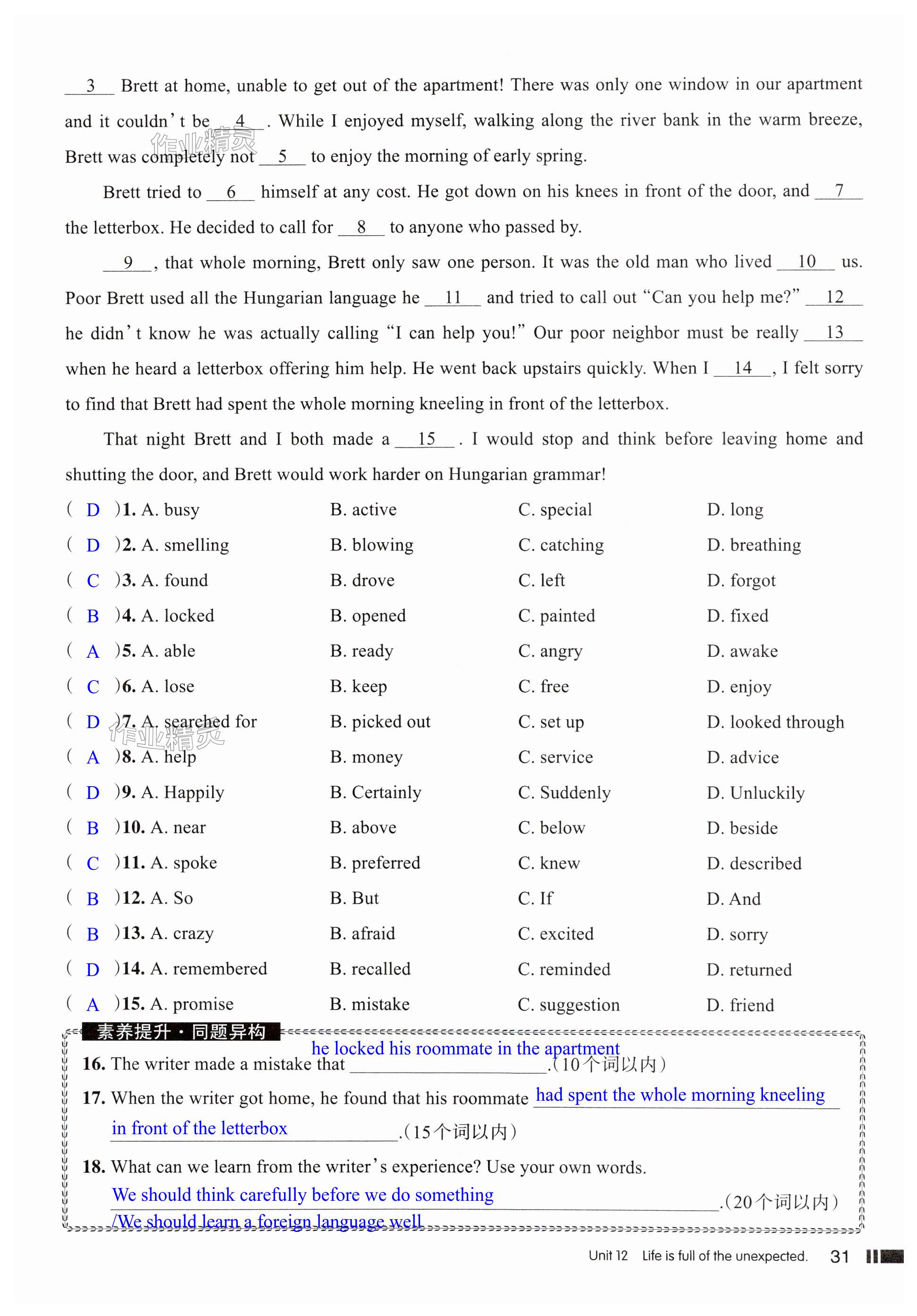 注:目前有些书本章节名称可能整理的还不是很完善,但都是按照顺序排列的,请同学们按照顺序仔细查找。练习册 2025年名校作业九年级英语下册人教版湖北专版 答案主要是用来给同学们做完题方便对答案用的,请勿直接抄袭。