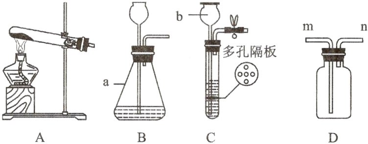 ①实验室制取氨气时选用的发生装置是______(填序号),若用装置D收集氨气,进气口应为______(选填“m”或“n”)端。